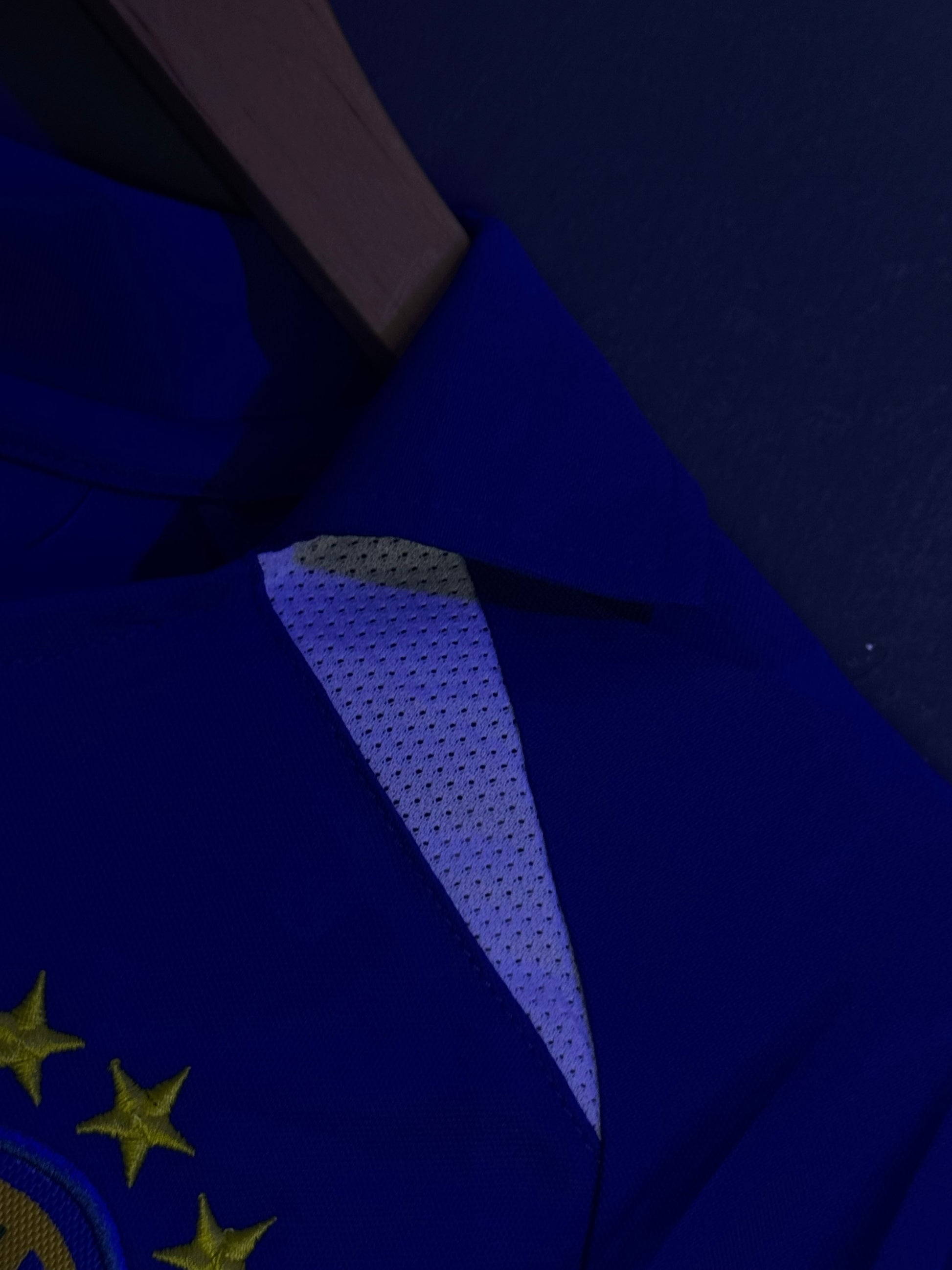 Confeccionada en thailand quality transpirable, este modelo visitante azul fue usado por leyendas como Ronaldo en el Mundial de Corea/Japón.