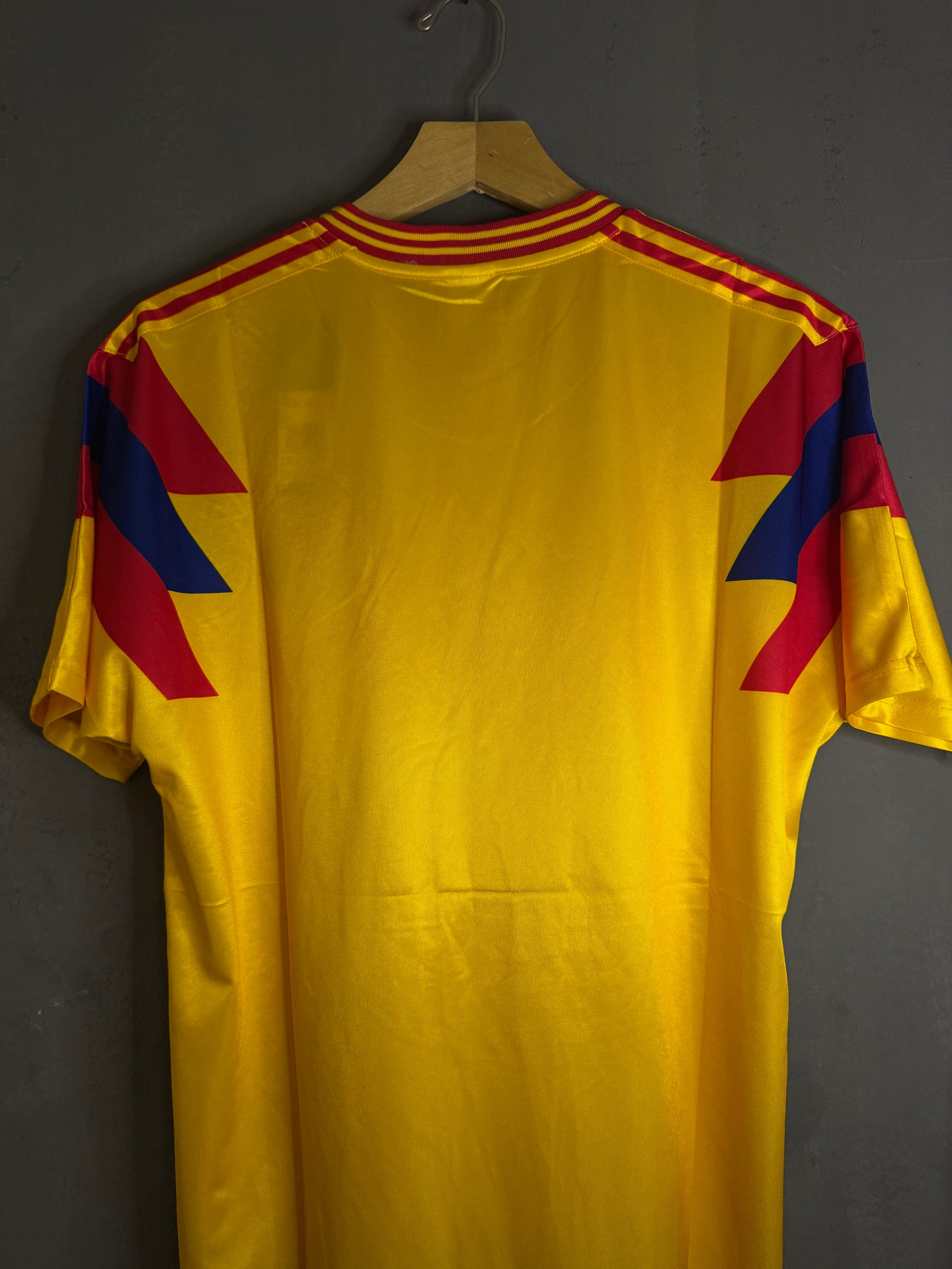 Camiseta con la que Colombia hizo historia en el Mundial de Italia 90, llegando por primera vez a los octavos de final.