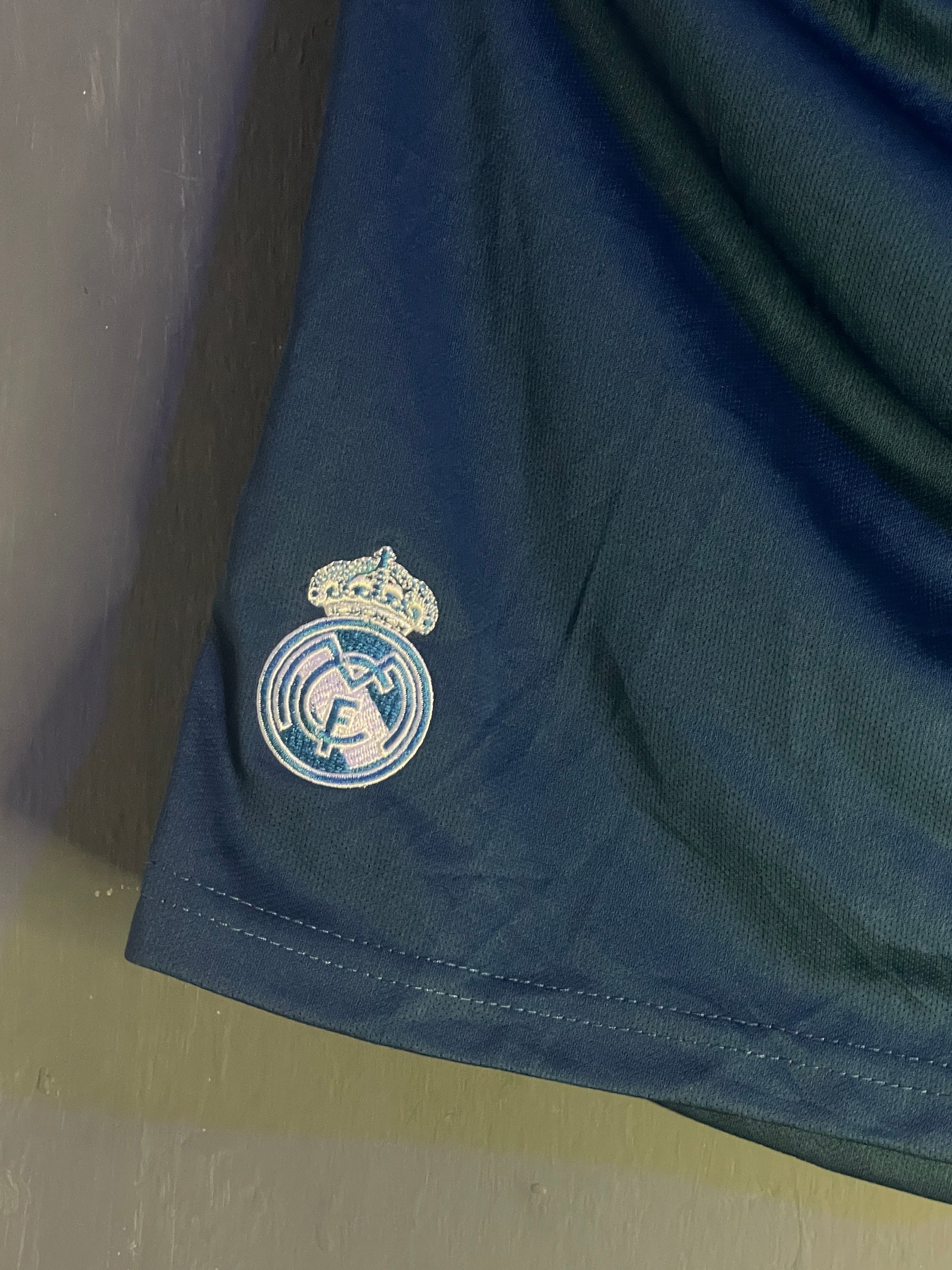 Buzo Real Madrid visitante 2018, en color azul, el mismo estilo de la temporada en que Cristiano Ronaldo marcó su histórica chilena a la Juventus. Confeccionado en tela Superkiana, cómoda y resistente. Escudo y logotipos bordados, con acabados premium que lo convierten en una prenda de colección para verdaderos madridistas.