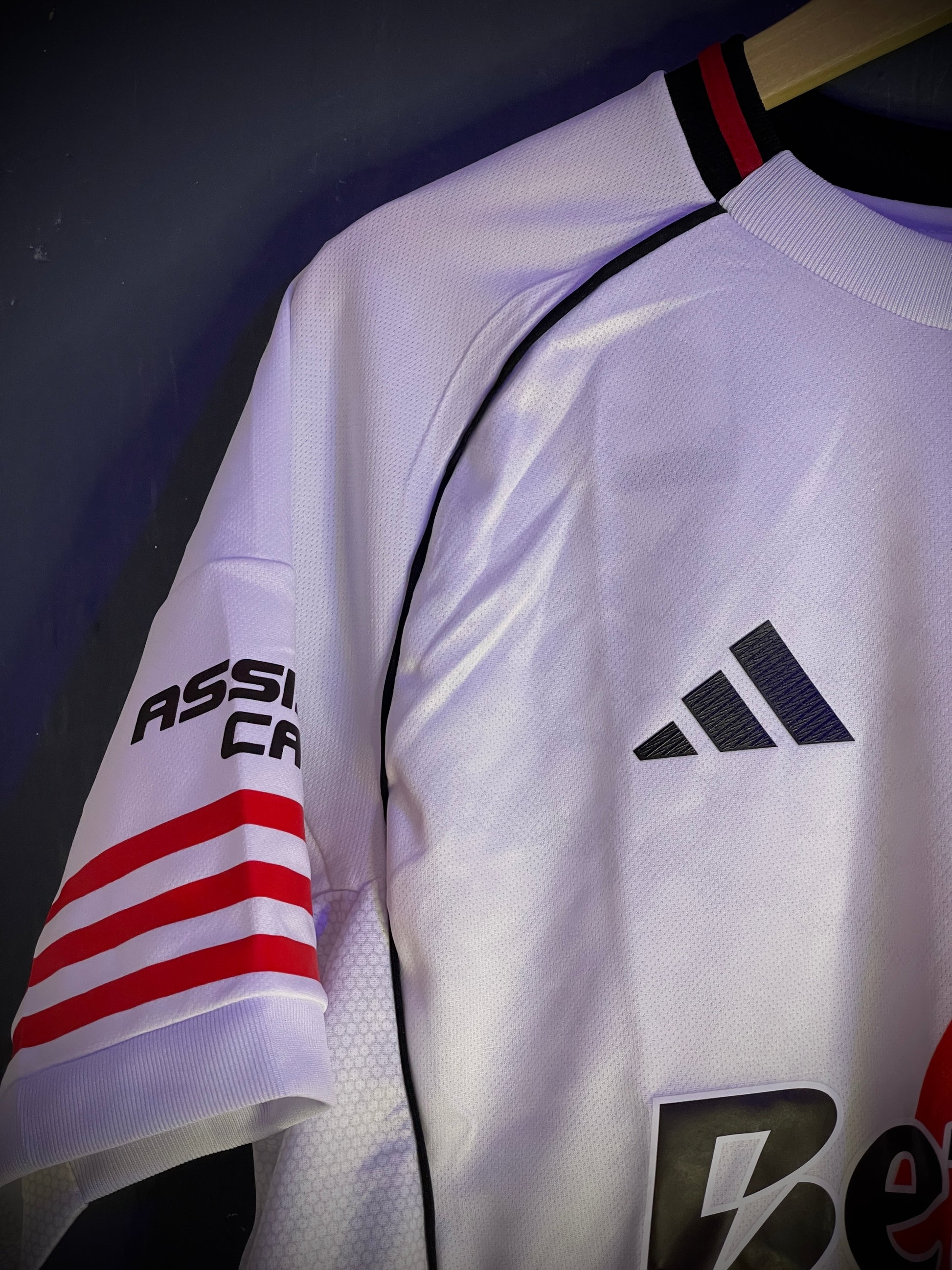 Camiseta River Plate local, con el diseño clásico de la banda roja que representa la historia del Más Grande. Confeccionada en tela Superkiana, liviana y fresca. Escudo y logotipos termosellados en bajorrelieve, con un acabado moderno y elegante ideal para lucirla con orgullo